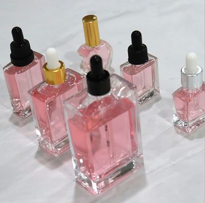 il quadrato del contagoccia 50ml modella le bottiglie di vetro di stoccaggio del chiaro pacchetto di vetro cosmetico