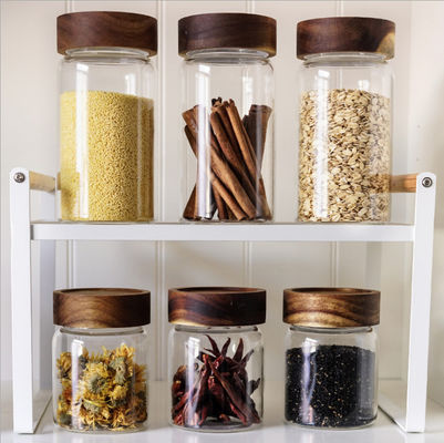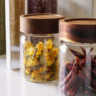 Barattolo di vetro trasparente del disco di Eco del barattolo del coperchio delle chiare scatole metalliche di legno vuote di vetro superiori amichevoli della cucina