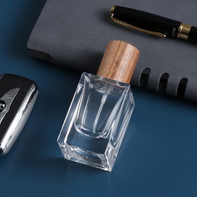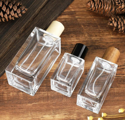 Bottiglia di profumo cosmetica di vetro dei contenitori del coperchio di legno di alta qualità Crystal Glass Bottles