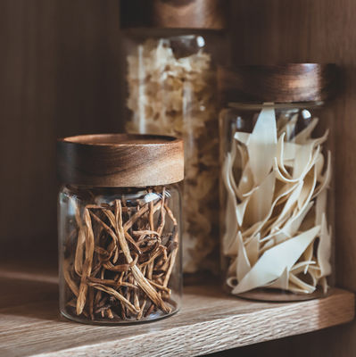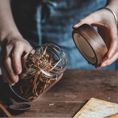 Barattolo di vetro trasparente Logo Empty Wooden Lid Clear delle scatole metalliche su ordinazione amichevoli della cucina di Eco