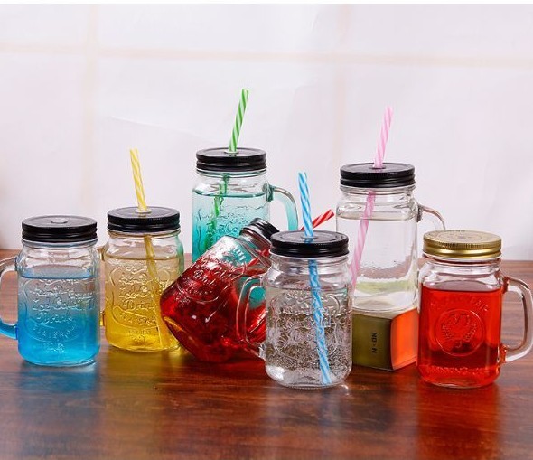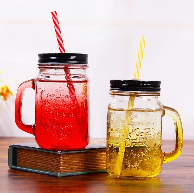Mason Jar Mugs variopinto con la maniglia regolare dice le bottiglie di vetro di stoccaggio