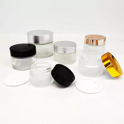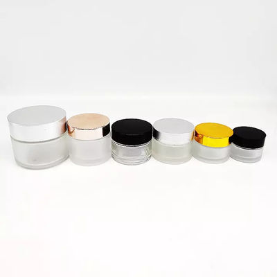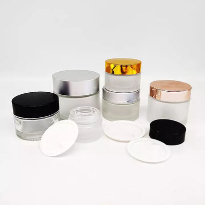 il chiaro barattolo di vetro cosmetico di 5ml 10ml 20ml 30ml 50ml 60ml 80ml 100ml con i cosmetici di lusso di argento del coperchio 100ml stona il contenitore di vetro