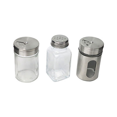 | Il condimento di vetro trasparente imbottiglia il barattolo del pepe del sale della spezia con le labbra d'acciaio del metallo | |||