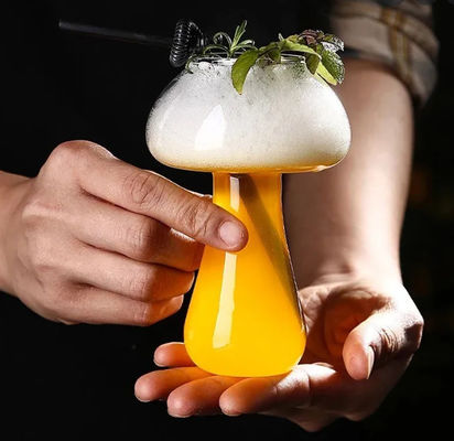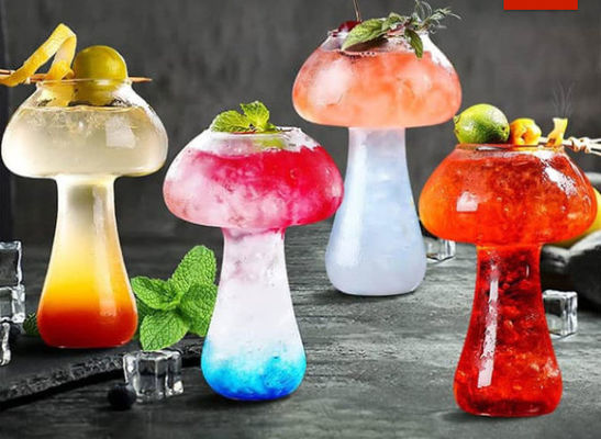 Fatto di vetro borosilicato di alta qualità, la forma di un fungo trasparente ha un senso unico di progettazione. Può essere utilizzato nella barra o nella casa. Con una capacità di 285ml, può tenere i cocktail, il whiskey, la tequila ed i vari tipi di bevande di frutta.