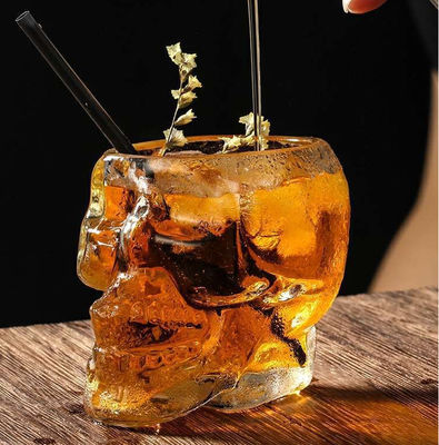 Fatto di vetro borosilicato di alta qualità, la forma di un cranio trasparente ha un senso unico di progettazione. Può essere utilizzato nella barra o nella casa. Con una capacità di 50ml 80ml 150ml 350ml 700ml, può tenere i cocktail, il whiskey, la tequila ed i vari tipi di bevande di frutta.